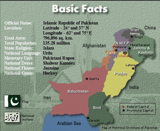 ). Revenue: PRs 378,030,000,000 (customs duties 24.4%, nontax receipts 23.8%, income taxes 20.2%, excise taxes 13.6%, sales tax 13.4%). Expenditures: PRs 434,690,000,000 (public-debt service 36.2%, defense 26.5%, development 22.2%, general administration 3.9%). Public debt (external, outstanding; 1996): U.S.$23,694,000,000. Production (metric tons except as noted). Agriculture, forestry, fishing (1996): sugarcane 45,230,000, wheat 16,907,000, rice 5,551,000, seed cotton 4,597,000, cottonseed 3,065,000, corn (maize) 1,300,000, potatoes 1,064,000, chickpeas 638,000, rapeseed 246,000; livestock (number of live animals) 45,600,000 goats, 29,800,000 sheep, 20,200,000 buffalo, 17,900,000 cattle, 110,000,000 chickens; roundwood (1995) 29,665,000 cu m; fish catch (1994) 551,899. Mining and quarrying (1994-95): limestone 9,682,000; rock salt 890,000; gypsum 624,000; silica sand 152,000; chromite 13,513. Manufacturing (1994-95): cement 7,913,000; chemical fertilizers 3,826,000 of which urea 3,000,000; refined sugar 3,001,000; cotton yarn 1,370,000; vegetable products 678,000; industrial chemicals 377,000; paper and paperboard 215,000; jute textiles 67,300; cotton textiles 321,841,000 sq m; cigarettes 32,747,000,000 units; motor-vehicle tires 912,000 units; bicycles 475,000 units. Energy production (consumption): electricity (kW-hr; 1994) 57,147,000,000 (57,147,000,000); coal (metric tons; 1994) 3,534,000 (4,628,000); crude petroleum (barrels; 1994) 20,805,000 (50,063,000); petroleum products (metric tons; 1994) 5,778,000 (13,511,000); natural gas (cu m; 1994) 16,668,000,000 (16,668,000,000). Population economically active (1995-96): total 36,700,000; activity rate of total population 27.9% (participation rates: ages 15-64 [1992-93] 50.4%; female [1992-93] 14.2%; unemployed 4.9%). Gross national product (1996): U.S.$63,567,000,000 (U.S.$480 per capita). Household income and expenditure (1988). Average household size 6.3; income per household PRs 25,572 (U.S.$1,420); sources of income: self-employment 56.0%, wages and salaries 22.0%, other 22.0%; expenditure: food 47.0%, housing 12.0%, clothing and footwear 8.0%, other 33.0%. Tourism (1995): receipts U.S.$114,000,000; expenditures U.S.$449,000,000. Land use (1994): forest 4.5%; pasture 6.5%; agriculture 27.7%; other 61.3%.